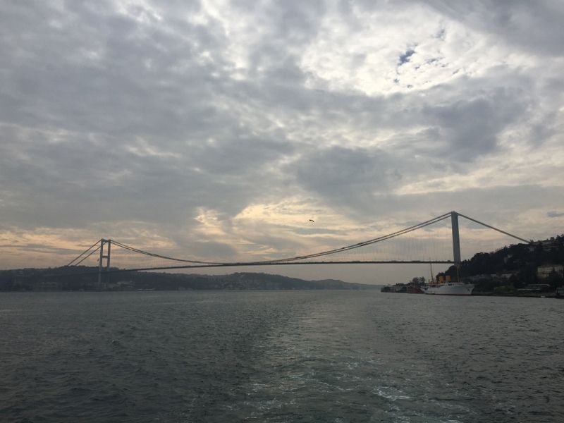 坂を降りると、目の前の海峡で、アジアとヨーロッパが繋がっていたり、